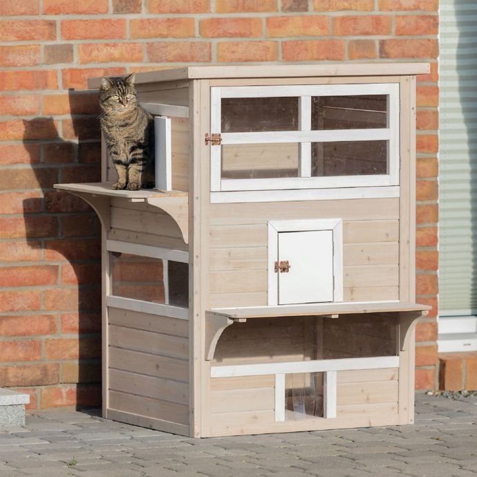 Trixie Natura Xxl Wooden Outdoor Cat Retreat In Grey Bed Bath